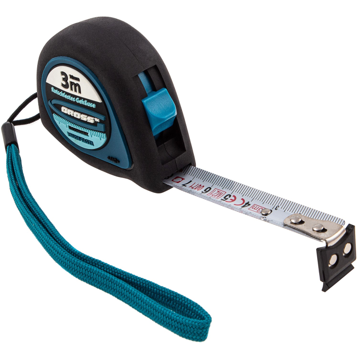 Miara zwijana Gross "Schlagfest" pozwala na określanie rozmiarów materiałów, obliczanie powierzchni pomieszczeń i wykonywanie innych pomiarów. Miara posiada funkcję automatycznego blokowania taśmy. Skala na taśmie jest dwustronna. Magnetyczny gumowy zaczep umożliwia chwytanie śliskich i metalowych powierzchni o skomplikowanym kształcie. Kieszonkowa miara jest niezbędnym narzędziem w gospodarstwie domowym i na placu budowy.