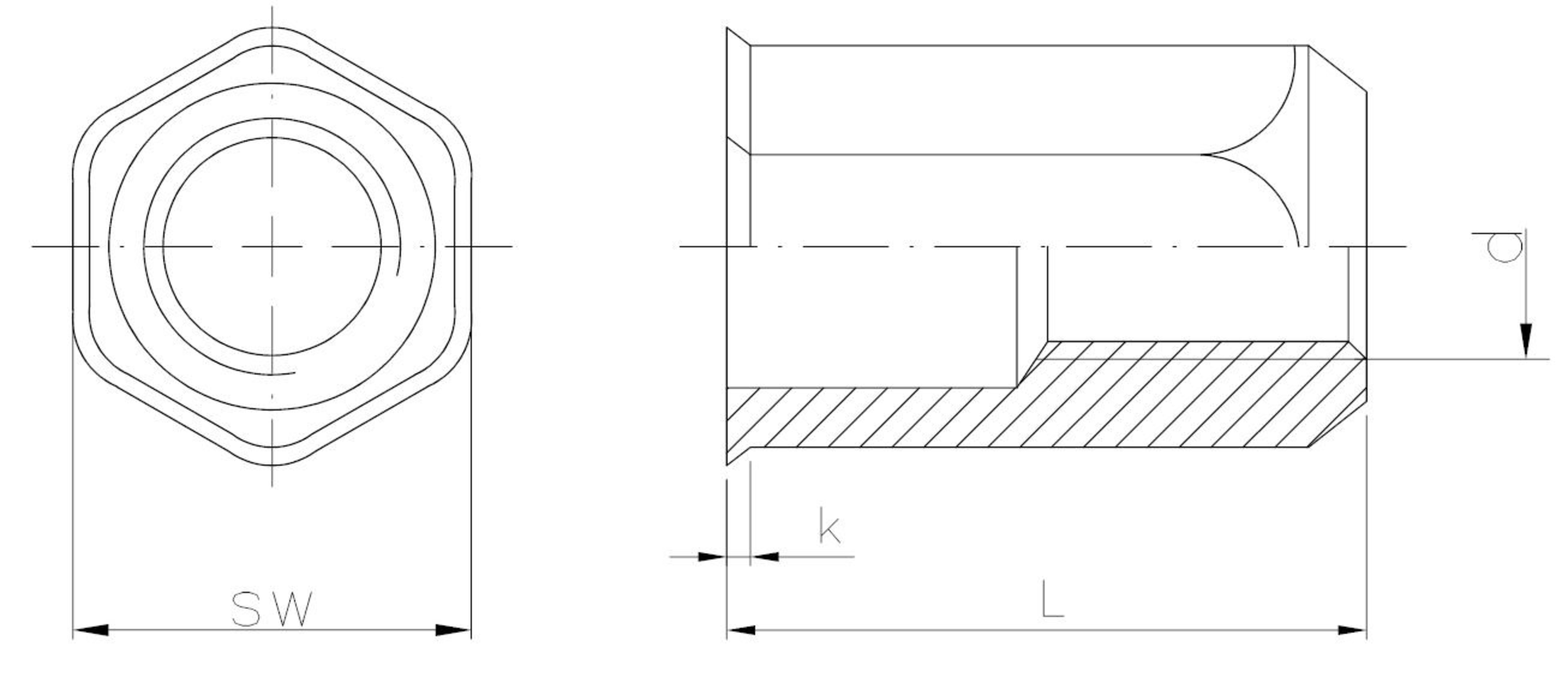 Sześciokątny kształt nitonakrętki całkowicie eliminuje ryzyko "przekręcenia" jej w materiale. Z kolei mini stożek pozwala na zanitowanie tej nitonakrętki bez konieczności fazowania otworu